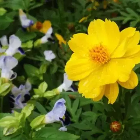 硫华菊喜阳光充足,不耐寒。多分枝,叶为对生的二回羽状复叶,深裂,裂片呈披针形,有短尖,叶缘粗糙,与大波斯菊相比叶片更宽。春播花期6-8月,夏播花期9-10月。