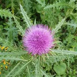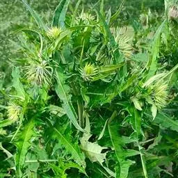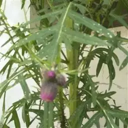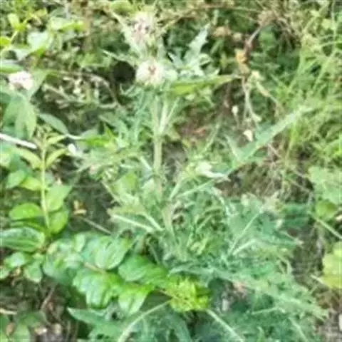 【性状】该品茎呈圆柱形,有的上部分枝,长5-30cm,直径0.2-0.5cm;表面灰绿色或带紫色,具纵棱及白色柔毛;质脆,易折断,断面中空。叶互生,无柄或有短 小蓟幼苗 柄;叶片皱缩或破碎,完整者展平后呈长椭圆形或长圆状披针形,长3-12cm,宽0.5-3cm;全缘或微齿裂至羽状深裂,齿尖具针刺;上表面绿褐色,下表面灰绿色,两面均具白色柔毛。头状花序单个或数个顶生;总苞钟状,苞片5-8层,黄绿色;花紫红色。气微,味微苦。