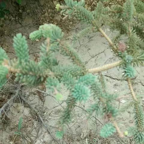 苗木出土后要根据不同生育期及时做好追肥、浇水、除草、间苗、病虫害防治。青杆苗生长缓慢,1年生苗高2~4cm,每天浇水2~4次,要量少次多,保持土壤湿润,浇水时间要避开中午高温或清晨低温,切忌用新抽上来的井水,最好就自然河水,井水必须在蓄水池中晾晒48h后才能浇,雨季减少浇水。除草剂使用可参照落叶松管理,但药量必须低于落叶松。间苗,2年生苗木留苗600~800株/m2,3年生为400~600株/m2。