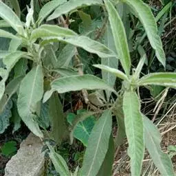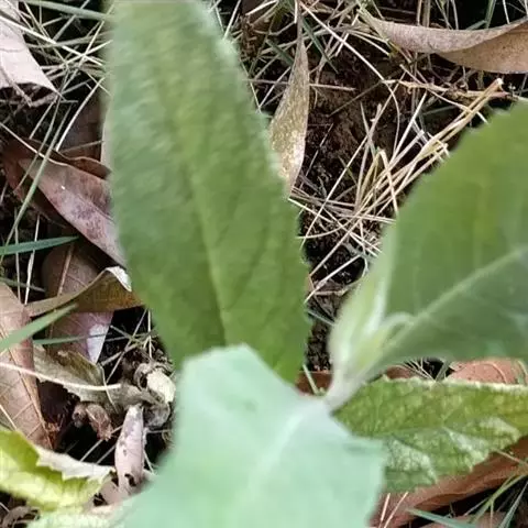 叶:下部叶有长达1-2厘米的柄,叶片倒卵形,长7-9厘米,宽3-4厘米,基部楔状渐狭,顶端圆钝,边缘有不规则的密细齿,两面被绢状长柔毛,在下面通常较密,中脉在下面明显凸起,侧脉5-7对,弧状或斜上升,不抵边缘,网脉明显或仅在下面明显;中部叶具短柄,倒卵形至倒卵状长圆形,长3-5厘米,宽2.5-3厘米,基部楔尖,顶端钝或短尖,有时具小尖头;上部叶渐小,近无柄,长1-2厘米,宽0.3-0.8厘米。