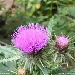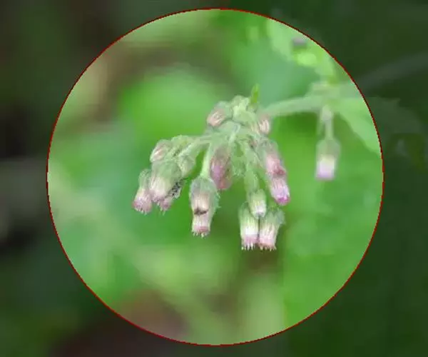 花:头状花序多数,无或有短柄,径3-5毫米,通常3-5个簇生,密集成聚伞状花序,再排成大圆锥花序,花序柄长达1厘米,被密长柔毛;总苞圆柱形,长约5毫米,总苞片近4层,草质,紫色至淡红色,长于花盘,花后反折,外层线形,长约3毫米,顶端渐尖,背面被密柔毛,杂有腺体,中层与外层同形,长约5毫米,边缘干膜质,背面被疏毛,内层狭,长于外层2倍,顶端锐尖;花托多少扁平,径1-2.5毫米,蜂窝状,无毛。花紫红色或花冠下半部淡白色;雌花多数,花冠细管状,长4-5毫米,檐部3齿裂,裂片无毛;两性花约10个,花冠管状,长约5毫米,向上渐增大,檐部5浅裂,裂片近三角形,顶端圆形或短尖,具乳头状突起及短柔毛。