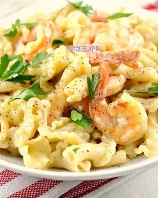 【原料】:意式空心面、鲜虾仁、洋葱、香草汁 调味料:姜片、橄榄油、白酒、盐
