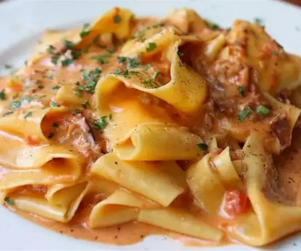 西红柿意大利面 13.传统宽面(Pappardelle):意大利人在家中最为常做的自制宽面,适合各种酱汁来烹饪。它与牛肝菌等菌类搭配尤其能突显菇类香味。煮熟时间:8~10分钟。