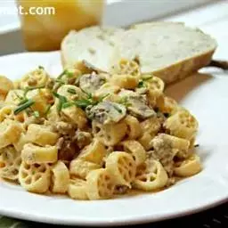 B.通心面100克、鸡胸肉150克、鲜奶油少许、辣椒粉少许、胡椒盐少许、起司粉少许、迷迭香少许、披萨起司少许、松子适量。