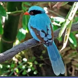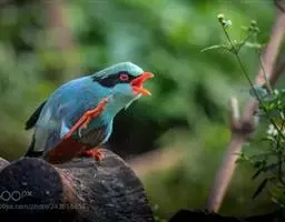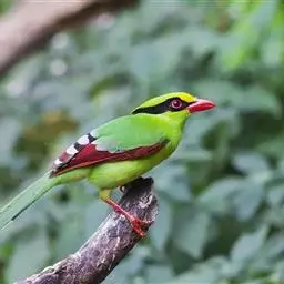蓝绿鹊:中型鸟类,共有5个亚种。体长36-38厘米。尾长,嘴、脚红色。通体羽色主要为草绿色,…