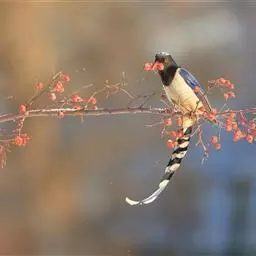 台湾蓝鹊:体长64至65厘米,翼展18至21厘米,尾长约40厘米,尾羽长占了总体长的三分之二。…