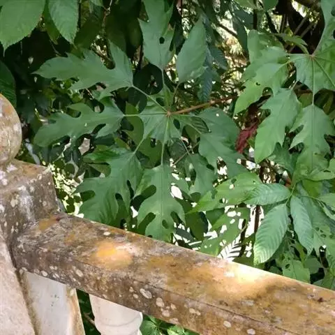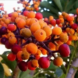 昆士兰伞木,吕松鹅掌柴 ,称昆石兰遮树,澳洲鸭脚木、方式叶鹅掌柴、伞树、大叶伞。叶片阔大,柔软下垂,形似伞状,株形优雅轻盈,易于管理,适于客厅的墙隅与沙发旁边置放,是室内理想的观叶植物。但目前多由南方引进,成本较高。常绿乔木,高可达30~40米。茎杆直立,少分枝,嫩枝绿色,后呈褐色,平滑。叶为掌状复叶,小叶数随树木的年龄而异,幼年时3~5片,长大时5~7片,至乔木状时可多达16片。小叶片椭圆形,先端钝,有短突尖,叶缘波状,革质,长20~30厘米,宽10厘米,浓绿色叶子。有光泽,叶背淡绿色。叶柄红褐色,长5~10厘米。浆果,圆球形,熟时紫红色。