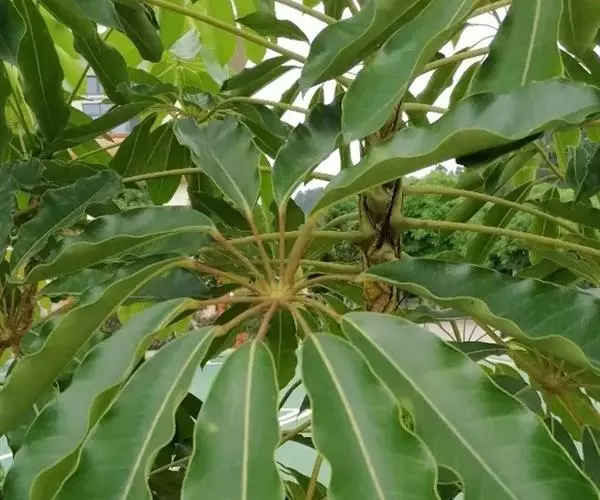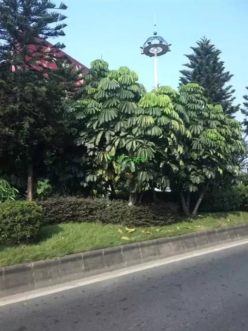 昆士兰伞木,吕松鹅掌柴 ,称昆石兰遮树,澳洲鸭脚木、方式叶鹅掌柴、伞树、大叶伞。叶片阔大,柔软下…