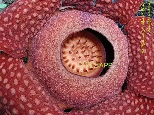 大王花(Rafflesia)是大花草科 大王花属20种肉质寄生草本植物的统称。肉质、寄生草本,寄生于植物的根、茎或枝条上,无叶绿素;吸取营养的器官退化成菌丝体状,侵入寄主的组织内。叶退化成鳞片或无。花通常单生,辐射对称,单性,雌雄异株,花被合生。雄蕊多数至5枚,无花丝;雌蕊由数枚合生心皮所组成;胚珠极多数,生于侧膜胎座上,珠被1-2层;花柱1或无,柱头盘状、头状或多裂。果为浆果;种子小,种皮坚硬,有内胚乳。