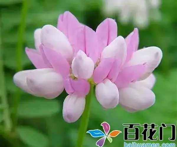 小冠花(学名:Securigera varia(L.) Lassen)是豆科,小冠花属多年生草本植物,茎直立,粗壮,多分枝,疏展,高可达100厘米。髓心白色,奇数羽状复叶,托叶小,膜质,披针形,叶柄短,小叶片薄纸质,椭圆形或长圆形,两面无毛;小脉不明显;小托叶小;小叶柄无毛;伞形花序腋生,花密集排列成绣球状,苞片披针形,宿存;花梗短;花萼膜质,萼齿短于萼管;花冠紫色、淡红色或白色,旗瓣近圆形,翼瓣近长圆形;龙骨瓣先端成喙状,喙紫黑色,荚果细长圆柱形,各荚节有种;种子长圆状倒卵形,6-7月开花,8-9月结果。