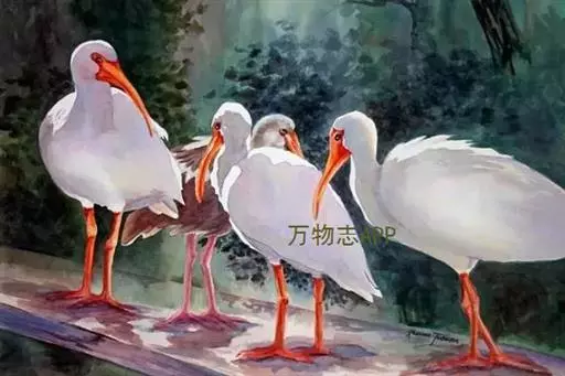 美洲白鹮:是一种大型涉禽。体长56-58厘米,体重750-1050克。头和颈裸出,喙很长,向下弯曲。…