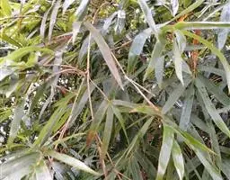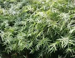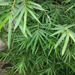 凤尾竹 Raeusch. ex Schult. ’Fernleaf’ R. A. Young)是禾本科,簕竹属孝顺竹的变种。植株较高大,杆高可达6米,竿中空,小枝稍下弯,下部挺直,绿色;竿壁稍薄;节处稍隆起,无毛;叶鞘无毛,纵肋稍隆起,背部具脊;叶耳肾形,边缘具波曲状细长繸毛;叶舌圆拱形,叶片线形,上表面无毛,下表面粉绿而密被短柔毛,小穗含小花,中间小花为两性;外稃两侧稍不对称,长圆状披针形,先端急尖;内稃线形,脊上被短纤毛,花药紫色,子房卵球形,羽毛状。成熟颖果未见。原产中国,华东、华南、西南以至台湾、香港均有栽培。凤尾竹喜温暖、湿润和阳光充足的环境,耐寒。宜土层深厚、肥沃、疏松的微酸性壤土。该种观赏价值较高,宜作庭院丛栽,也可作盆景植物。全草或根入药,味淡、微苦,性寒,有清热利湿、凉血止血、消肿解毒功效,可治痢疾、泄泻等多种病症。凤尾
