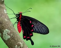 曙凤蝶是凤蝶科、曙凤蝶属蝴蝶。体背黑色,头、颈、胸侧及腹侧具红色鳞毛。雌、雄异型。雄蝶翅黑绒色,…
