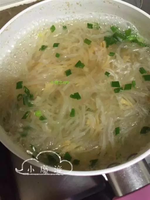 放入蛋块,再用旺火烧3分钟,见汤汁变白时,放入盐、味精,起锅装入汤盆内即成。