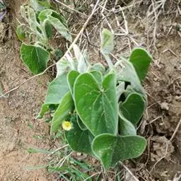 半灌木;茎上部缠绕,下部直立,全株被绒毛。叶对生,纸质,宽卵形或椭圆形,长7-10厘米,宽3-6厘米, 顶端锐尖,基部圆形或近心形,两面被黄色绒毛,边具绿毛;侧脉6-8对。伞形状聚伞花序腋生,近无总花梗,着花10余朵;花序梗被绒毛,长仅1毫米,稀达10毫米;花萼外面被柔毛,内面基部5枚腺体极小,裂片狭披针形,渐尖;花冠初呈黄白色,渐变为黑紫色,枯干时呈暗褐色,钟状辐形;副花冠极低,比合蕊冠为短,裂片三角形;花药近菱状四方形;花粉块每室1个,长圆形,下垂;柱头略为凸起,顶端不明显2裂。蓇葖单生,宽披针形,长5厘米,直径1厘米,向端部渐尖;种子宽卵形,暗褐色,长5毫米,宽3毫米;种毛白色绢质,长2厘米。花期5-8月,果期7-9月。