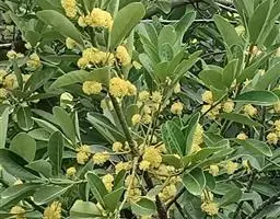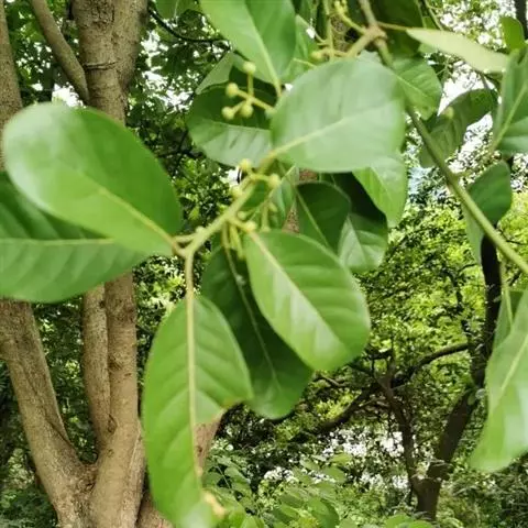 假柿木姜子(Litsea monopetala(Roxb.) Pers.):常绿大乔木,叶纸质,倒卵形、倒卵状椭圆形或宽卵形,先端圆钝,基部圆形或宽楔形,长8-20厘米,宽8-15厘米。伞形花序簇生,橙黄色。花期5-6月,果期7-8月。是优良的庭园观赏树种。分布于中国和印度;在中国分布于广东、广西、云南,东南亚。可以播种繁殖。