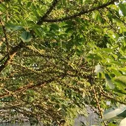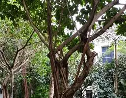 修剪和再次利用:以放养胶虫为目的的聚果榕,妥求培养较多的宜胶枝条,冠内通风透光适度。因此在放虫前修除细弱枝,干枯枝。收胶时,结合砍除胶枝,注意留权、培养树形和宜胶枝。在土壤水肥条件好,气候条件适宜的地段,收胶后,萌发的新枝,生长一年又可再次利用。