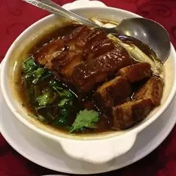 梅菜扣肉,汉族传统名菜,属客家菜 。制作材料有五花肉、梅菜、葱白、姜片等。