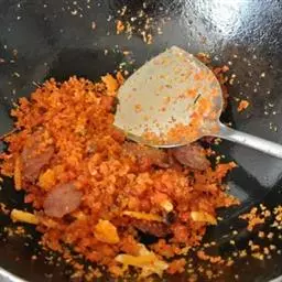 4.加入1杯米酒、1杯麻油和1杯酱油,与锅内食材一同搅拌均匀。