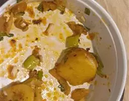 3)半杯油倒入锅里,炒香姜片和葱段。