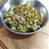1.光鸡洗净斩块,加入1汤匙米酒、1/2汤匙酱油和1汤匙生粉抓匀,腌制15分钟。