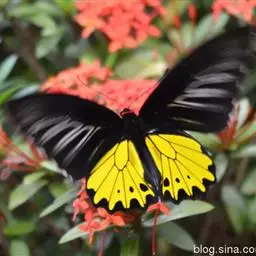 金裳凤蝶是凤蝶科、裳凤蝶属的动物。金裳凤蝶身体呈黑色,头、颈和胸侧有红毛,腹部有黑黄两色相间条纹,…