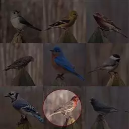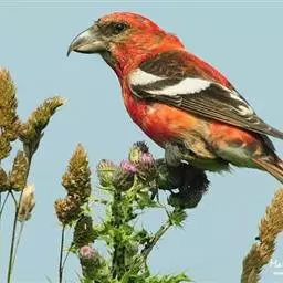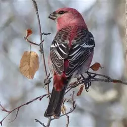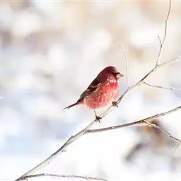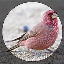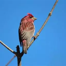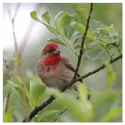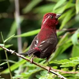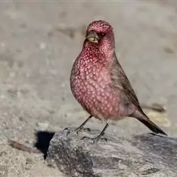 藏朱雀:全长约17-18厘米。雄鸟头部深红色具光辉,喉部暗红色具白色点斑;背部灰白色,各羽具玫瑰红…