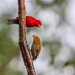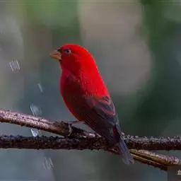 酒红朱雀小型鸟类,体长13~15厘米。雄鸟通体深红色,头部深朱红或棕红色,下背和腰玫瑰红色,…