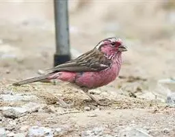 红眉朱雀(学名:Carpodacus pulcherrimus):体长15厘米,是一种中等体型的朱雀。上体褐色斑驳,眉纹、脸颊、胸及腰淡紫粉,臀近白。雌鸟无粉色,但具明显的皮黄色眉纹。雄雌两性均甚似体型较小的曙红朱雀,但嘴较粗厚且尾的比例较长。藏南亚种粉色较其他亚种为淡。虹膜深褐色;嘴浅角质色;脚橙褐色。