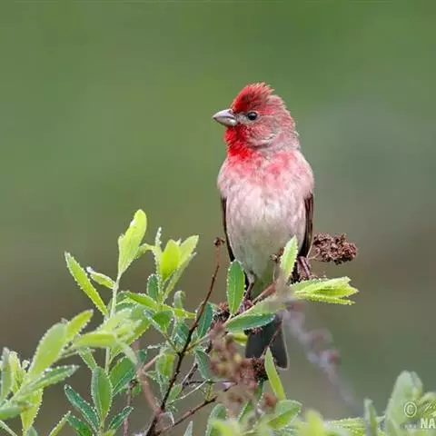 北朱雀,是燕雀科朱雀属鸟类。雄鸟额和头顶前部珠白色具窄的粉红色羽缘,…