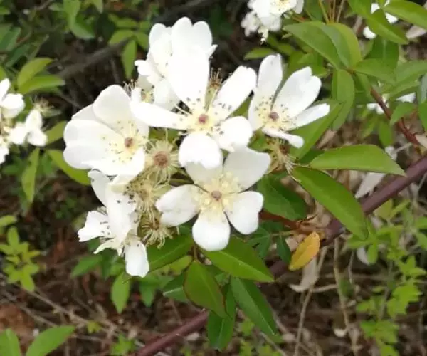 此种与单瓣的木香花(R. banksiae Ait.)均有3-5小叶,夏季盛开白色芳香的花朵,秋后结红色球形果实,两者极为近似,但该种花序为复伞房状花序,外萼片常有羽状裂片,雌蕊花柱被毛,突出花托口外,是其特点。叶形大小以及小枝、花梗上密被短柔毛或完全无毛变异甚大,中间类型很多不易划分。