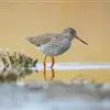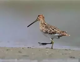 红脚鹬:体长28厘米,上体褐灰,下体白色,胸具褐色纵纹。飞行时腰部白色明显,次级飞羽具明显白色外缘。…