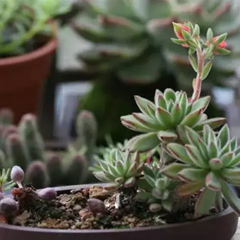 夏季适合布置在东、南、西朝向阳台上。宝石花耐高温烈日。但光照过强叶片易老化,影响观赏效果,因此气温炎热时应布置于早晚有光照的阳台或窗台上培养。气温较高时生长减缓,应注意控水,防止高温多湿引起烂根。夏末气温凉爽后移至光照下培养,并增加浇水量。