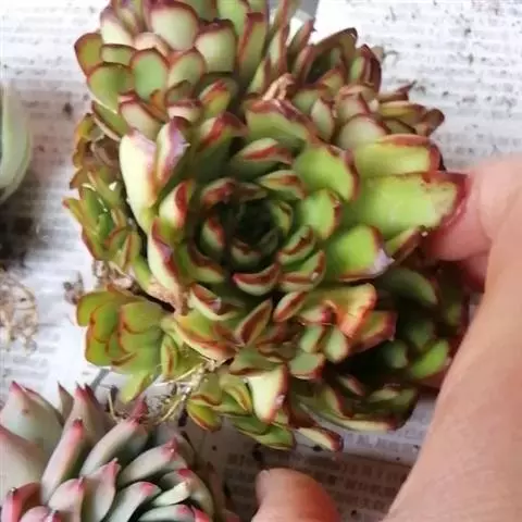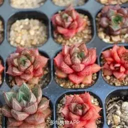 大和锦是景天科拟石莲花属的多肉植物。肉质叶排成紧密的莲座状,广卵形至散三角卵形,背面突起呈龙骨状,…