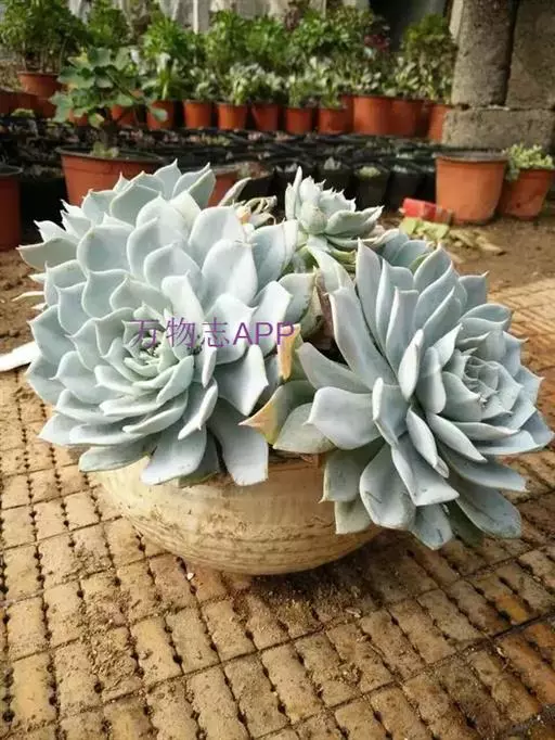 蓝石莲是景天科、拟石莲花属的多肉植物。茎部粗壮,成熟植株茎部木质化。叶片莲座型密集排列,株径不会很大,…