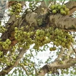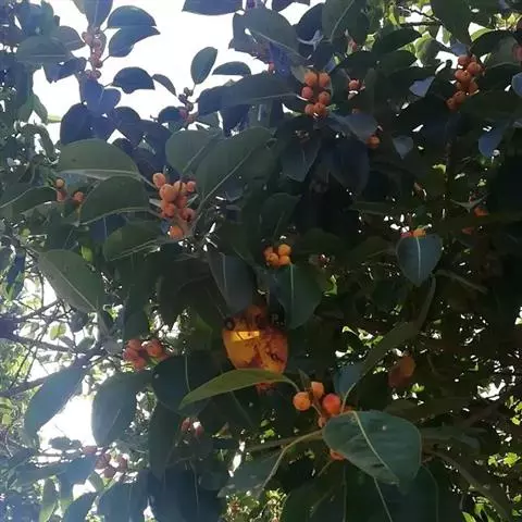 这方面,金钱榕与无花果很类似,也开花结果,只是隐头花序球是绿色的,很小而且隐藏在叶腋处,不易被觉察,等变为果实长大后才看得见。