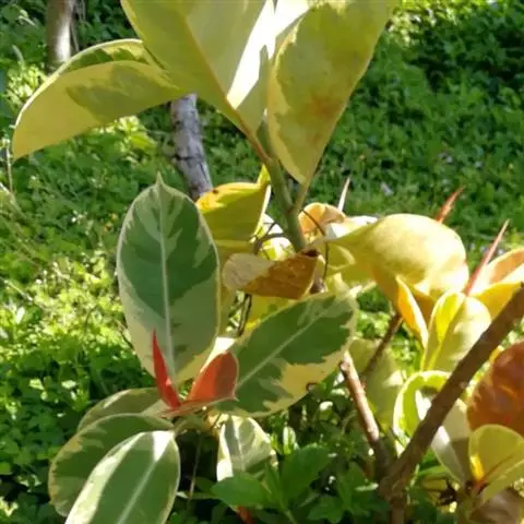 榕属以扦插繁殖为主,也可采用压条法,甚至能得到成熟种子的还可以播种繁殖,花叶橡皮树最适宜压条法。温室繁殖不受季节影响,但扦插最适宜的季节为春季,可选用一年生的顶枝或侧枝,一般带 2~3片叶,为防止白浆流出,插穗剪下后要蘸草木灰,或涂上油漆,插于沙、蛭石或珍珠岩中,也可水插,温度保持25~30℃,3周左右生根。