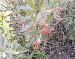 金花小檗(学名:Berberis wilsonii Hemsl.):枝常弓弯,老枝棕灰色,幼枝暗红色,具棱,散生黑色疣点;茎刺细弱,三分叉,淡黄色或淡紫红色。叶革质,倒卵形或倒卵状匙形或倒披针形,先端圆钝或近急尖,有时短尖,基部楔形,上面暗灰绿色,网脉明显,背面灰色,常微被白粉,网脉隆起;近无柄。花簇生;花梗棕褐色;花金黄色;小苞片卵形;萼片2轮,外萼片卵形,内轮萼片倒卵状圆形或倒卵形;花瓣倒卵形,先端缺裂,裂片近急尖;雄蕊长约3毫米,药隔先端钝尖。浆果近球形,粉红色,顶端具明显宿存花柱,微被白粉。花期6-9月,果期翌年1-2月。