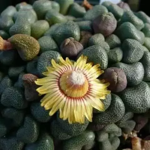 帝玉是番杏科、对叶花属多肉多年生草本多浆植物。植株矮小。植株无茎,叶极肉质,交互对生,对生叶卵圆形,…