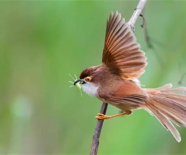 金眼鹛雀是莺科、鹛雀属小型鸟类。体长16-20厘米。头顶和上体棕褐色,两翅表面肉桂红色,…