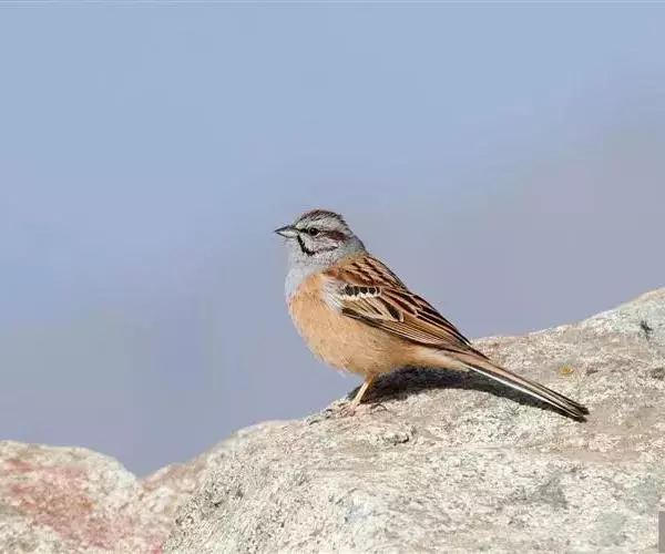 栗斑腹鹀:属小型鸣禽。体重19-25克,体长145-167毫米。头顶至背栗红色,眼先和颧纹黑褐色,…
