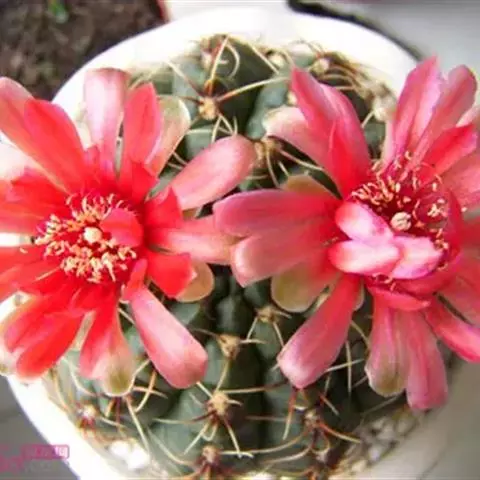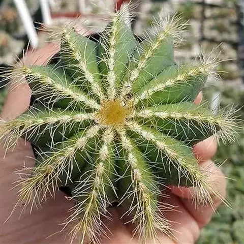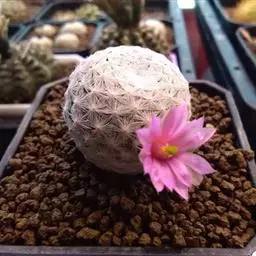 球体特殊,形似山核桃,相当有趣;花时色彩绚丽,繁花如锦,十分夺目;又适宜盆栽,是许多爱好者喜欢收集的品种。 幼株圆筒形,成年株椭圆形,有时也会萌生仔球。体色深绿色,球径5-6厘米,高8-10厘米,具5-6个肥厚的直棱,黄白色毛状刺1-3枚,易脱落。春季至初夏侧生粉红、紫粉、紫或白等色漏斗状的花,花径5-6厘米。