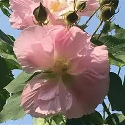 海滨木槿是锦葵科木槿属植物,落叶小乔木,株高3-5米,胸径20厘米,扁球形树冠,枝叶繁盛。…