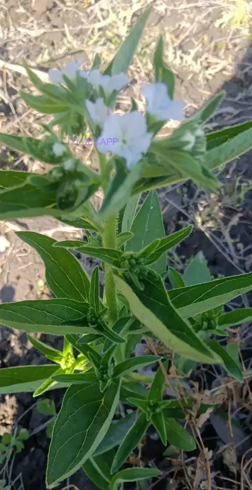 多年生草本,根富含紫色物质。茎通常1-3条,直立,高40-90厘米,有贴伏和开展的短糙伏毛,上部有分枝,枝斜升并常稍弯曲。叶无柄,卵状披针形至宽披针形,长3-8厘米,宽7-17毫米,先端渐尖,基部渐狭,两面均有短糙伏毛,脉在叶下面凸起,沿脉有较密的糙伏毛。