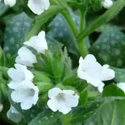 花序生茎和枝上部,长2-6厘米,果期延长;苞片与叶同形而较小;花萼裂片线形,长约4毫米,果实可达9毫米,背面有短糙伏毛;花冠白色,长7-9毫米,外面稍有毛,筒部长约4毫米,檐部与筒部近等长,裂片宽卵形,长2.5-3毫米,开展,全缘或微波状,先端有时微凹,喉部附属物半球形,无毛;雄蕊着生花冠筒中部稍上,花丝长约0.4毫米,花药长1-1.2毫米;花柱长2.2-2.5毫米,柱头头状。小坚果卵球形,乳白色或带淡黄褐色,长约3.5毫米,平滑,有光泽,腹面中线凹陷呈纵沟。花果期6-9月。