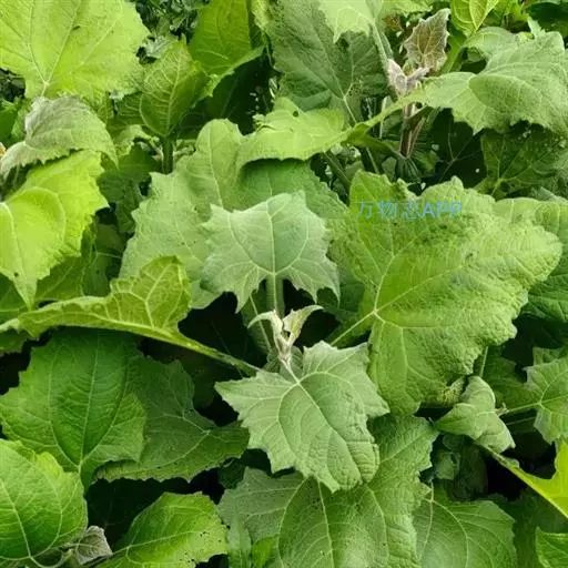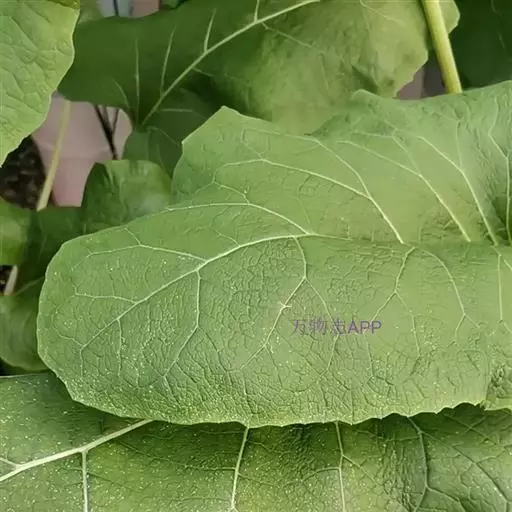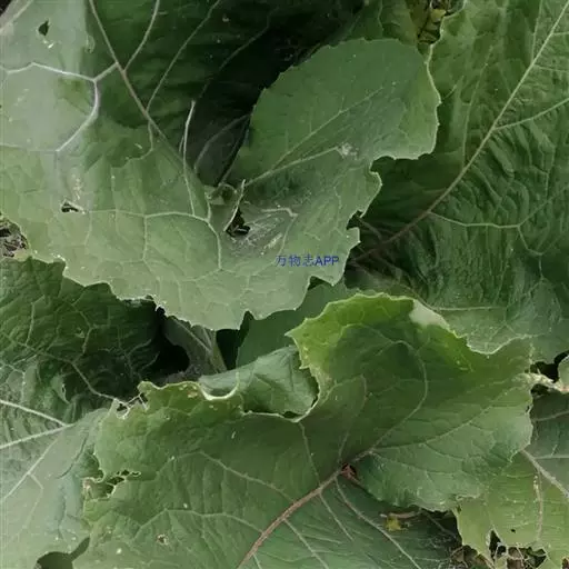 基生叶宽卵形,长达30厘米,宽达21厘米,边缘稀疏的浅波状凹齿或齿尖,基部心形,有长达32厘米的叶柄,两面异色,上面绿色,有稀疏的短糙毛及黄色小腺点,下面灰白色或淡绿色,被薄绒毛或绒毛稀疏,有黄色小腺点,叶柄灰白色,被稠密的蛛丝状绒毛及黄色小腺点,但中下部常脱毛。茎生叶与基生叶同形或近同形,具等样的及等量的毛被,接花序下部的叶小,基部平截或浅心形。