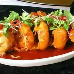 炒大虾是一道菜品,制作原料有大对虾、葱段、姜片等,用微火焖烤透,再将勺移正火,收汁微浓时放入味精,…