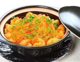 银丝顺风虾是一道美食,主要食料有活基围虾、粉丝等。