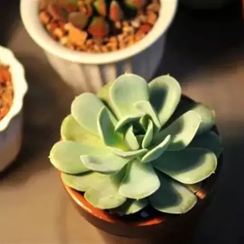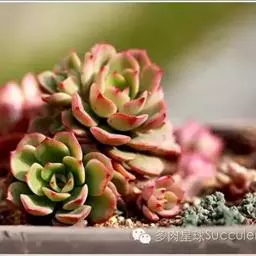 大和锦是景天科拟石莲花属的多肉植物。肉质叶排成紧密的莲座状,广卵形至散三角卵形,背面突起呈龙骨状,…