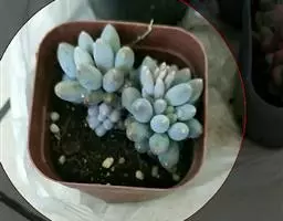 白牡丹(xGraptoveria ‘Titubans’),景天科多肉植物,由风车草属的胧月(Graptopetalum paraguayensis)与拟石莲花属 的静夜(Echeveria derenbergii)杂交培育而来。茎叶多肉化,叶色灰白至灰绿,叶片表面有淡淡的白粉。